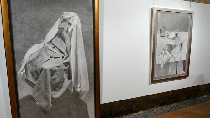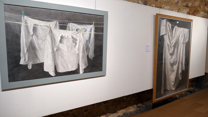 En la muestra se presentan desde escenas de su entorno a los carteles que han dado a conocer Las Edades del Hombre, pasando por obras que reflejan ropajes, "un homenaje a Zurbarán", o camisas, en recuerdo del Gólgota y el Calvario, "un tema muy atractivo", según ha explicado el autor.