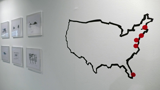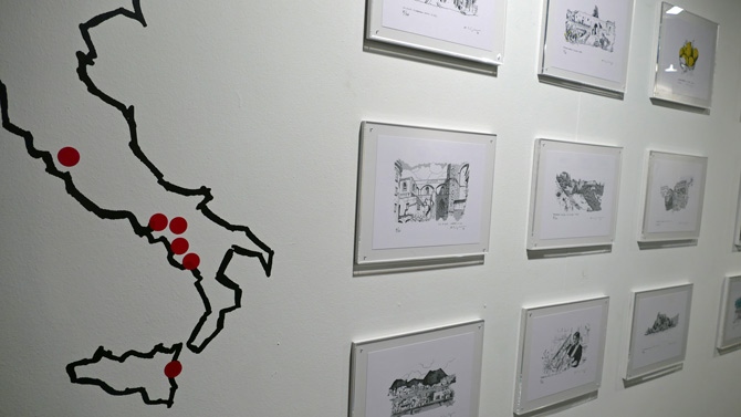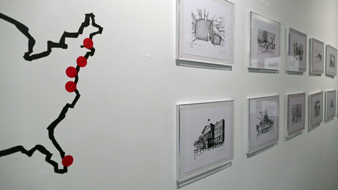 Así, pueden verse 23 ciudades de cuatro países y tres continentes que ha dibujado durante cuatro años, entre 2011 y 2015, reflejando lugares como Nueva York, Roma, Bangkok y, por supuesto, Ávila, además de dos grandes pinturas dos espacios simbólicos para el autor.