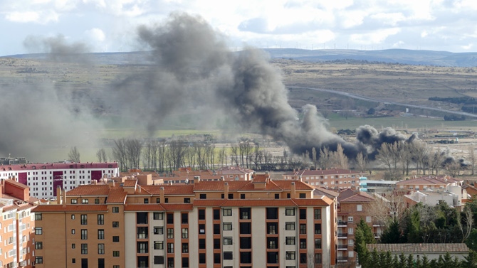 Los bomberos estiman que han ardido hasta 500 neumáticos, aunque había más en el interior del inmueble, cuya techumbre se encuentra en parte hundida.