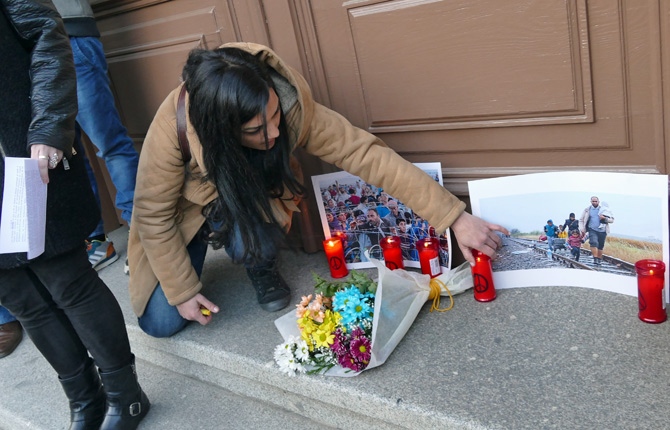 Con fotografías de refugiados, velas, flores y un minuto de silencio a la puerta de la Subdelegación del Gobierno, han rechazado la política europea en esta materia.