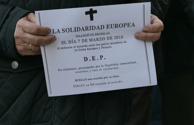 También algunas personas portaban una esquela: "La solidaridad europea falleció en Bruselas el día 7 de marzo de 2006 al definirse el acuerdo entre los países miembros de la unión Europea y Turquía. Sus ciudadanos, preocupados por la ilegalidad, inmoralidad, xenofobia y falta de solidaridad".