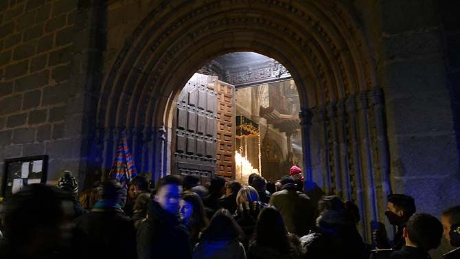 La plaza de la Catedral, donde se hubiera celebrado el tradicional Encuentro a las 22,15 horas, se encontraba desierta, estampa tan distinta a las cientos de personas que se congregan cada año en uno de los más momentos más llamativos de la Semana Santa abulense.