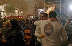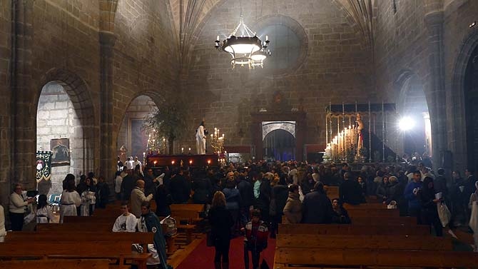 Las imágenes de Nuestra Señora de la Esperanza -con manto nuevo- y de Nuestro Padre de la Salud, situados a ambos lados de la entrada de la iglesia, se vieron rodeadas de cofrades y de quienes esperaban esa salida de San Juan.
