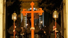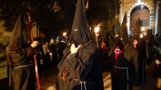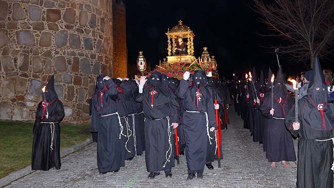 En torno a la pequeña figura de barro del Santísimo Cristo de los Ajusticiados y de los hachones encendidos, la fría madrugada ha reunido a numerosos penitentes, muchos descalzos, y a numeroso público, para presenciar el recorrido procesional que volvió a salir de la iglesia de Mosén Rubí, ya que el año pasado lo hizo desde la Catedral al celebrarse Las Edades del Hombre.