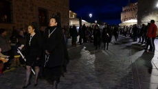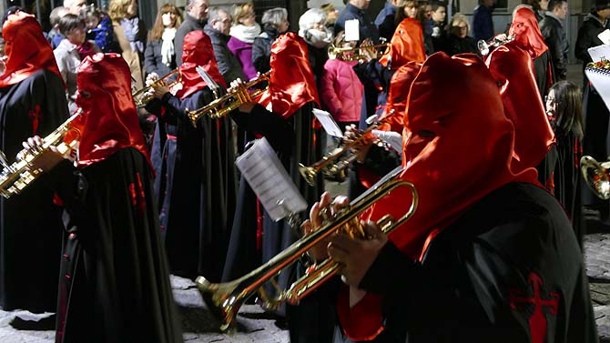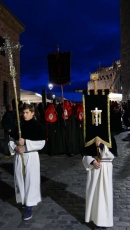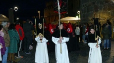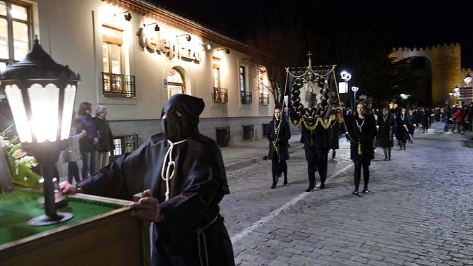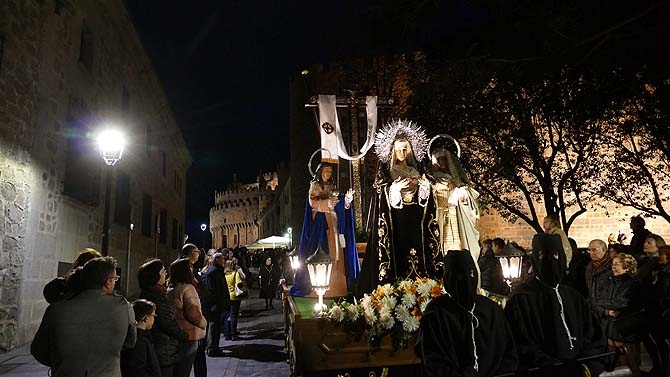 Las imágenes de Nuestra Señora de la Soledad y Las Tres Marías al pie de la cruz han recorrido las calles, con inicio y final en la iglesia de San Pedro, acompañadas de más de 150 damas de la Soledad de todas las edades, precedidas por miembros de la Hermandad de los Estudiantes.
