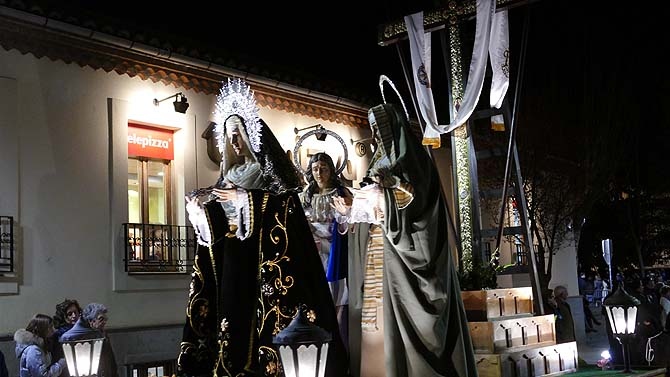 Es la segunda ocasión que sale en procesión Las Tres Marías al pie de la cruz, un paso con una cruz del año 1993 al que se sumaron hace un año las imágenes de la Virgen María, María Magdalena y María Cleofás como homenaje a las tres mujeres que vivieron cerca de Jesús.