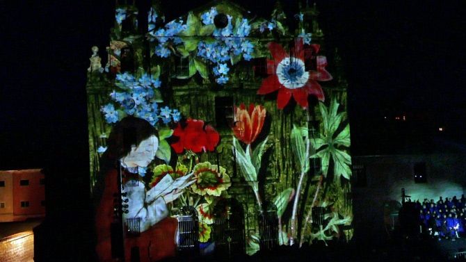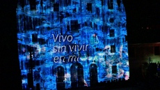 El fútbol no impidió que la plaza de La Santa se llenase para presenciar el videomaping de 13 minutos de duración, que en la noche del sábado ha contado como novedad la música en directo, entre imágenes de la mística, sus símbolos y sus fundaciones.