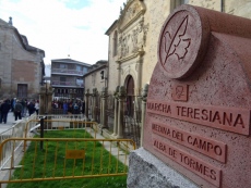 Antes de partir desde el Convento de las Carmelitas Descalzas de Alba de Tormes y tras visitar el sepulcro de Santa Teresa de Jesús, se ha leído el soneto que Miguel de Cervantes dedicó a Santa Teresa, 'Los éxtasis de la Beata Madre Teresa de Jesús'.
