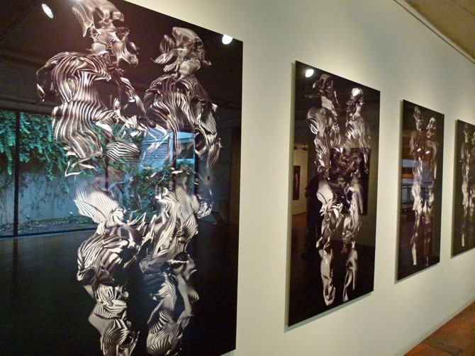 Las figuras, cuerpos y retratos, se diluyen en el ordenador, donde el autor explica que “juega con la iluminación y los colores”, y muestra “sobre la superficie el reflejo del espacio que rodea al individuo, edificios, códigos de barras u otros elementos y que emergen, solitarios o acompañados, del fondo monocromo que persiste en todas las obras”.