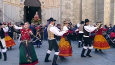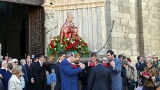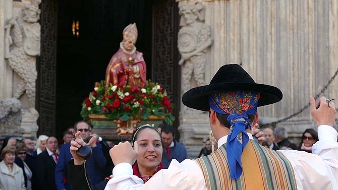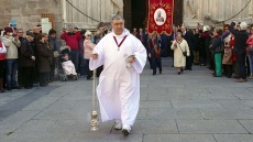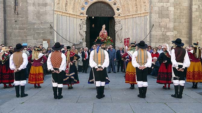 Esos bailes acompañaron a toda la procesión desde la Catedral, desde donde salió poco después del mediodía, cuando terminó la misa oficiada por el obispo, Jesús García Burillo.