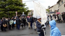 Tras el baile subieron hasta la iglesia de San Juan, donde la dejaron a la hora de comer. Luego retomaron el camino de regreso a su ermita, donde poco antes de llegar empezó a jarrear y hubo que echar mano de nuevo del impermeable.