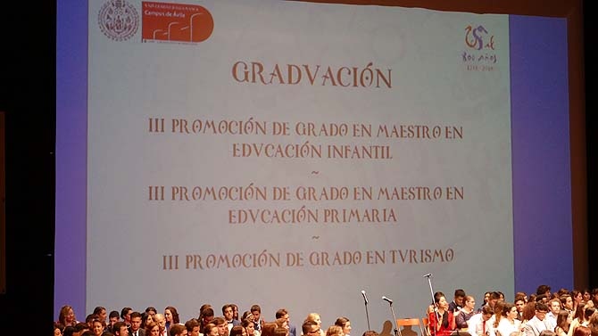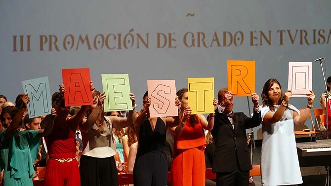 En el acto se han impuesto las bandas a 61 alumnos del grado de Maestro en Educación Primaria, 42 de Educación Infantil y 41 del Grado de Turismo, en todos los casos de la tercera promoción. Y ha estado salpicado de anécdotas tanto por los alumnos que han intervenido como por quienes han apadrinado a cada promoción.