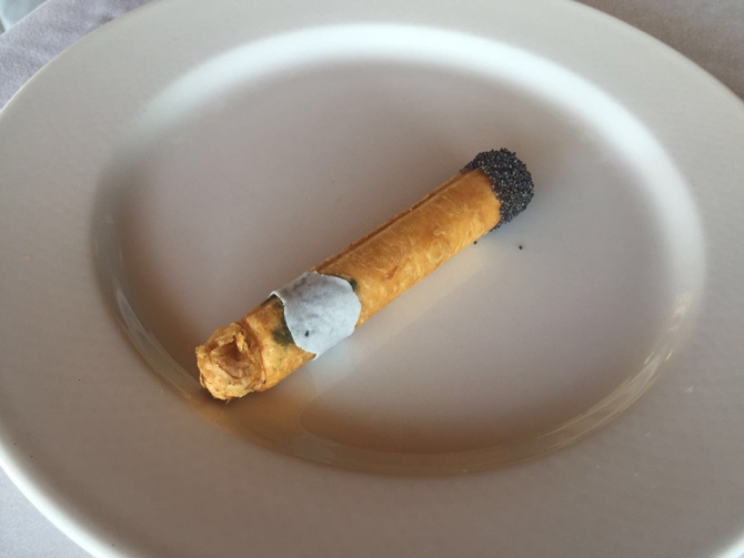 - 'Crujiente de rabo de avileña con mahonesa ahumada de su jugo y ensalada de wakame y microvegetales', de La Vaquería-Naturávila.