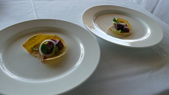 - 'Taco de solomillo de avileña marinada en soja y jengibre, puntos de guacamole y chile chipotle', de Los Tres Caracoles.