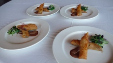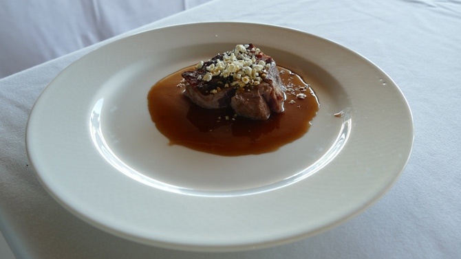 - 'Solomillo, crujiente de bacon, torta del Casar, cous-cous de palomitas y salsa Fusion', de La Casona Fusión.