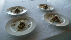 - 'Tres texturas, tres culturas' (tapa apta para celíacos), de la Venta El Colmenar.