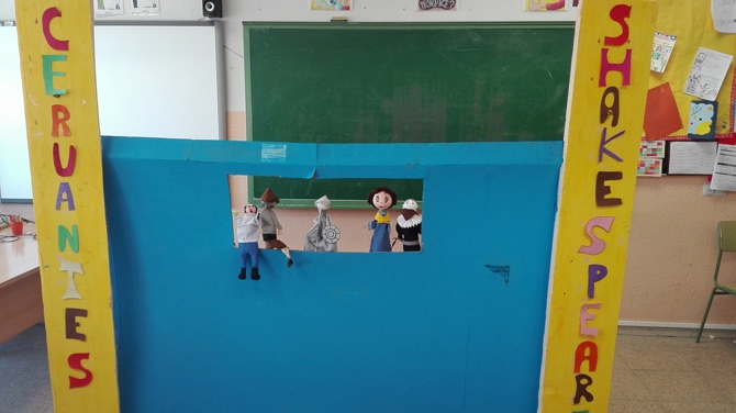 Con motivo de la conmemoración del cuarto centenario del fallecimiento de ambos escritores, las asignaturas bilingües de Ciencias Sociales y Artes y Oficios se han combinado para dar vida una iniciativa en la que los alumnos han creado marionetas basadas sobre personajes de ‘El ingenioso hidalgo don Quijote de la Mancha’ y ‘Romeo y Julieta’.