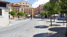 La plaza de Pedro Dávila con el aparcamiento en batería vacío, y la plaza del Teniente Arévalo sin ningún coche, en la que ahora destacan la atención las dos terrazas de los establecimientos hosteleros, eran llamativas imágenes.