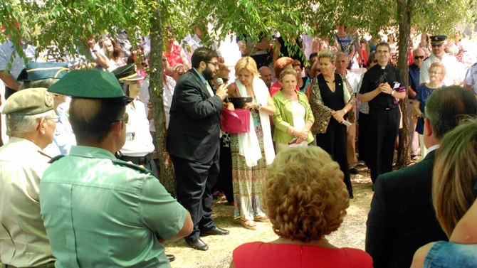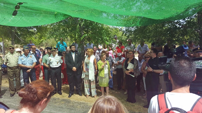 Se ha descubierto un monolito con los escudos de la Policía, el Ejército y la Guardia Civil.