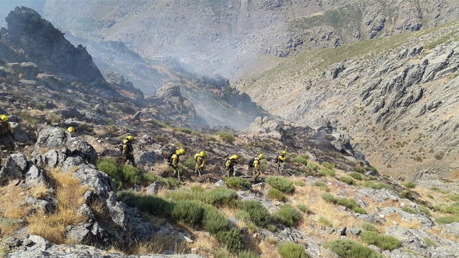 En la mañana del jueves trabajan hasta ocho medios aéreos, los mismos que participaron en las tareas durante la jornada del miércole: los helicópteros de El Barco de Ávila, Piedralaves, el puerto del Pico y los dos de La Iglesuela; además del llegado de Plasencia (Cáceres), dos aviones anfibios de Matacán (Salamanca) y un helicóptero de coordinación. Junto a ellos cuatro Brif, cuatro equipos helitransportados, siete cuadrillas de tierra, cinco agentes medioambientales y dos técnicos. No se conoce la superficie afectada.