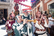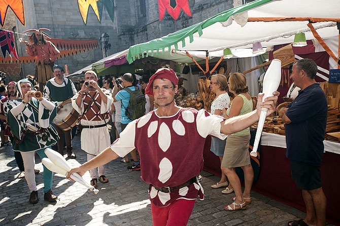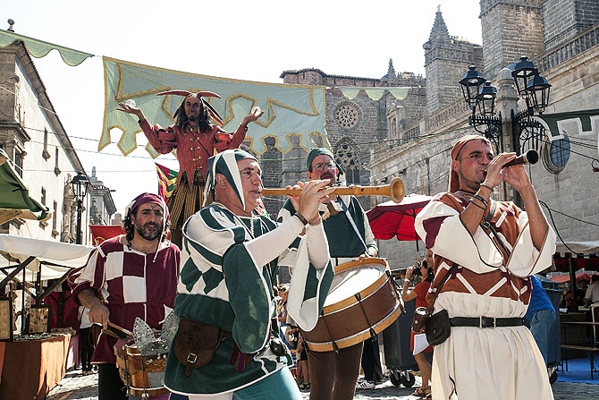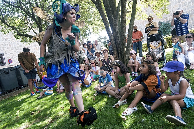 A medio camino han hecho un alto ante el pórtico de la Catedral para ofrecer el pregón. Desde entonces y hasta la medianoche han salido a las calles variados grupos de animación, música, malabarismos, pasacalles, cuentacuentos o exhibiciones de cetrería.
