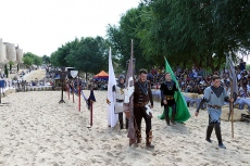 Contra el estafermo, frente a la diana o cogiendo anillas, los jinetes han disputado sus pruebas ante un público entregado a cada uno de los cuatro jinetes de la compañía alicantina Legend Especialistas, que también han disputado duelos a caballo con lanza larga.