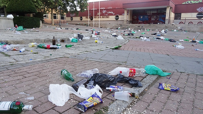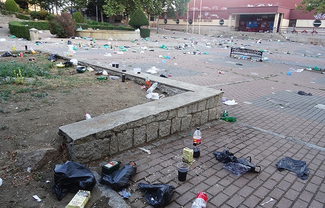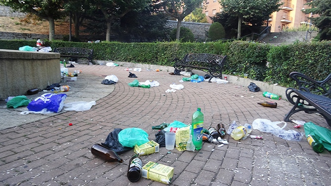 El retraso en la limpieza de los restos del ya popular botellón del parque de San Antonio ha vuelto a ofrecer una imagen pésima de la ciudad, con un espacio atestado de residuos.