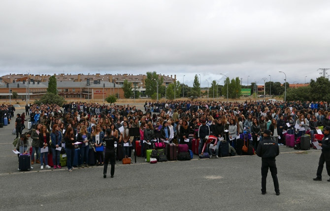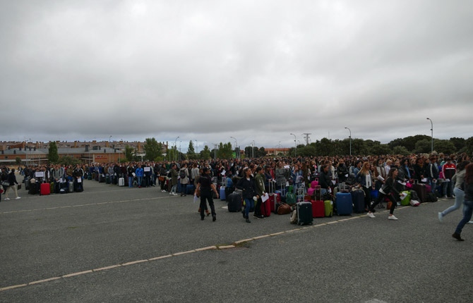 En el primer día otoñal, con ocho grados, a primera hora de la mañana del miércoles una larga cola de jóvenes con sus maletas entraba en el recinto policial y, tras situarse en la explanada, han sido llamados al auditorio para asignárseles a una de las 30 secciones.