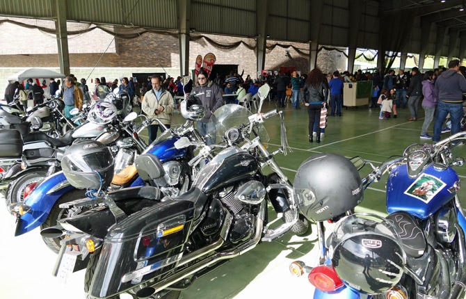 Más de un centenar de motos con sus respectivos pilotos han acudido a la Cubierta Multiusos, que se han unido a numerosos aficionados al mundo de las dos ruedas, a miembros de Down Ávila y al público que ha secundado el llamamiento del KMAS (Komando Motero Acción Solidaria).