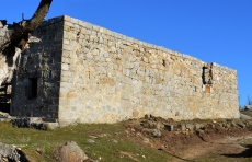 Sin embargo, las centenarias cornisas de piedra que deberían haberse colocado en el alero del tejado de la ermita, lugar para el que fueron diseñadas y labradas, sirven ahora para rematar una extraña acera y el pretil que separa el edificio del camino.