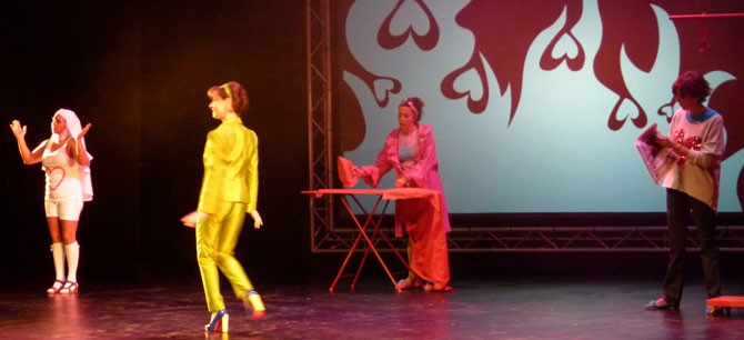 Y con ellas dos veteranas actrices como Fabiola Toledo y Ana Hurtado, que juegan con acierto los papeles marcados por el texto de Isabel Arranz. Todo ello, y todas ellas, insertadas en los colorines de Agatha Ruiz de la Prada, que inundan la escenografía con su corazón-logotipo, sea en el electrocardiógrafo cuando la Padilla espera al ginecólogo, sea en el hábito de la Flores vestida de monja.