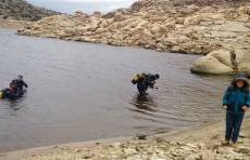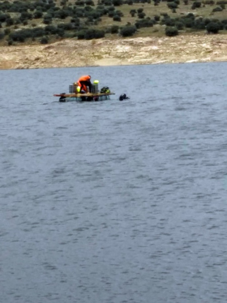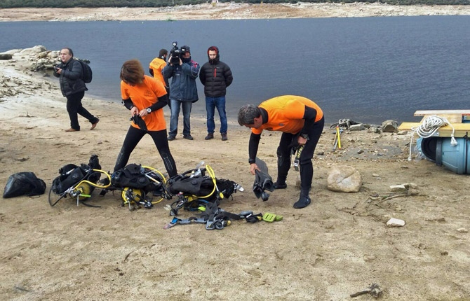 En la mañana desagradable mañana del domingo, un equipo de buceadores ha llevado a cabo la tarea de introducir en el pantano las botellas de vino tempranillo, donde permanecerán medio año después de haber permanecido doce meses en barrica de roble francés.