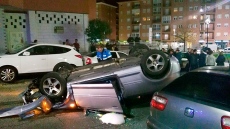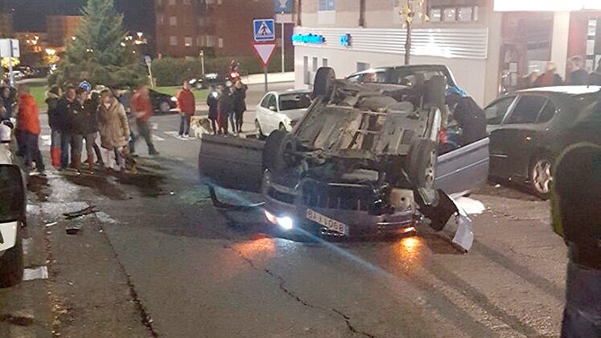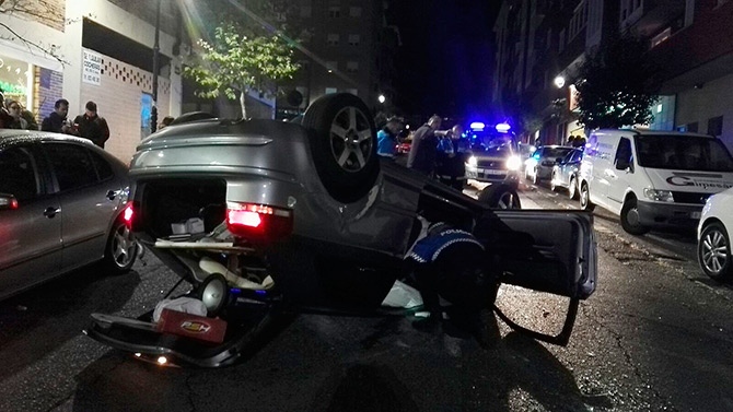 Al tomar la rotonda del cruce de Rodríguez Sahagún con la calle Vereda de las Mozas para subir hacia Camino del Gansino, el conductor perdió el control de su vehículo y colisionó con otros dos coches estacionados, para quedar volcado sobre la calzada.
