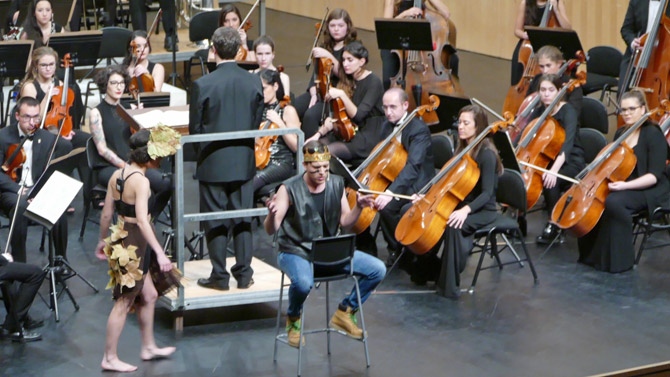 Eider Badiola, Alejandro Fernández y Mar P. Soler fueron los actores que dieron vida a 'Peer Gynt' entre las piezas del poema sinfónico.