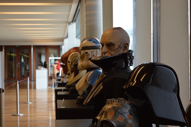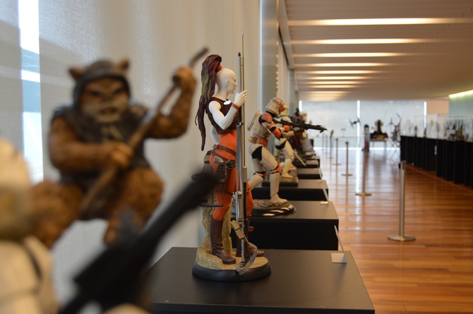 En la exposición pueden verse desde figuras, bustos y naves espaciales a espadas láser firmadas por los actores originales de reparto, deportivas personalizadas o ediciones limitadas. “La idea es que incluso aquellos que no han visto las películas, disfruten la exposición”, ha explicado el comisario.