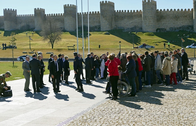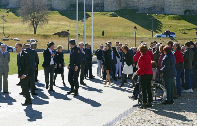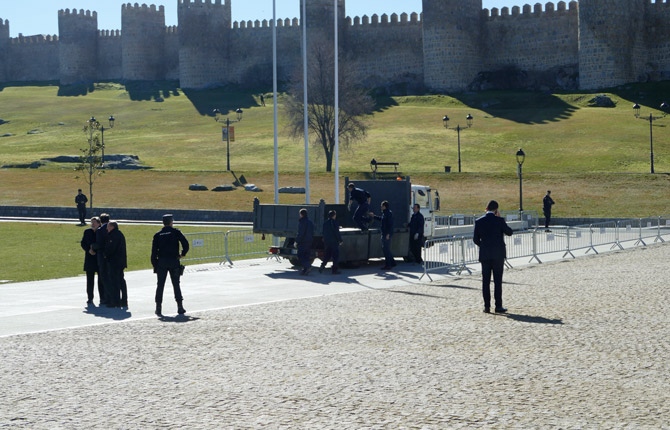 Debido a la llegada de la monarca y a la falta de previsiones sobre el público que asistiría, el Ayuntamiento había situado vallas a ambos lados del camino empredrado que une la acera con el centro de congresos Lienzo Norte. Sin embargo, momentos antes del recibimiento de la reina, operarios municipales han procedido a retirarlas. Ante esto se dan dos posibles explicaciones: que el vehículo, como de hecho ha ocurrido, debía llegar hasta la misma entrada del recinto; o que el comité de bienvenida de los abulenses no era lo suficientemente numeroso como para ser necesaria la precaución de las vallas.