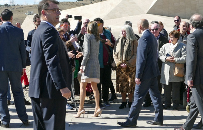 La reina Letizia ha acudido a Ávila este miércoles, en su segunda visita a la ciudad. A la entrada (11,30 horas) sólo una veintena de personas la han recibido. A la salida (cerca de las 14 horas) había un centenar de personas, a las que se ha acercado a saludar. Algunas la han llamado guapa e incluso un joven se ha hecho un selfi con ella.