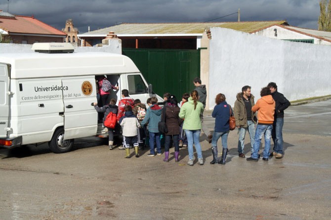 Alumnos de distintos puntos de la comarca pudieron participar en experimentos de ciencia con el agua gracias a un laboratorio móvil del Centro de Investigación del Agua, en una charla sobre sus usos y visitas la laguna para ver las grullas y otras aves que allí se encontraban, además de ver la exposición ‘El agua que nos une’.