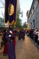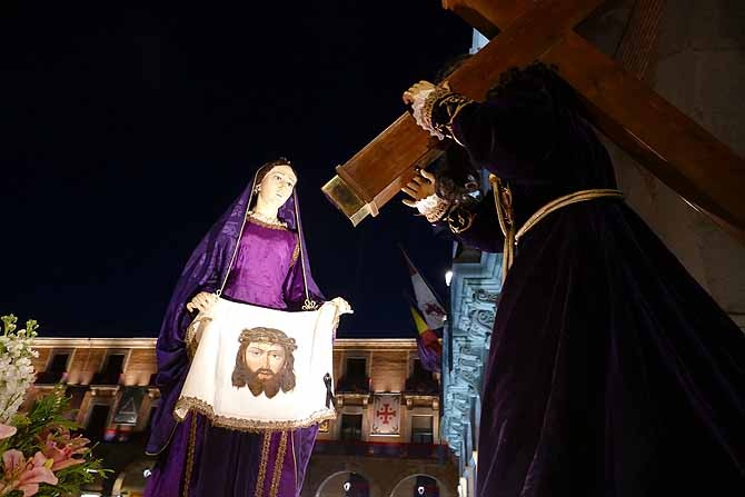El morado color ha sido la seña de identidad en el desfile procesional del Ilustre Patronato de la Santa Vera Cruz, en el que el Santísimo Cristo de los Ajusticiados es el noveno y último paso, emblema de la entidad penitencial.