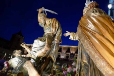 También con temperatura de verano, la procesión ha contado con cientos de espectadores, que han llenado las calles por la que ha discurrido, desde la Catedral hasta el Mercado Chico por la calle del Tostado, para luego bajar por Vallespín y llegar a la plaza de La Santa, desde la que ha regresado al templo catedralicio.