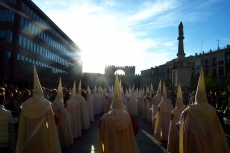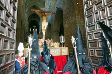 El primer paso, la desnuda y sobria cruz dorada, ha sido escoltada por la banda de la Oración en el Huerto, de Medina del Campo (Valladolid), de donde también ha llegado la banda Jesús Atado a la Columna, que ha acompañado al paso de Nuestra Señora de la Soledad, de Eduardo Capa Sacristán y originaria del año 1958.