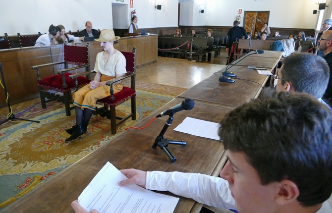 Ataviados con trajes y vestidos del siglo XVI, los “testigos” han jurado ante un ejemplar de 'El Lazarillo de Tormes' que iban a decir la verdad a preguntas de los “fiscales” y “abogados”.