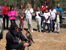 Tras reponer fuerzas en el merendero, sobre todo con fruta, los alumnos observaron una exhibición de cetrería antes de emprender el camino de regreso.
