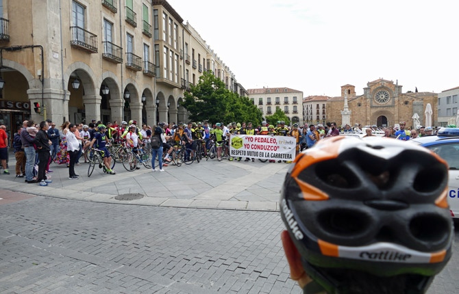 'Yo pedaleo, yo conduzco. Respeto mutuo en la carretera' es el lema de la pancarta bajo la que los ciclistas han demandado medidas que garanticen la seguridad en calles y carreteras.