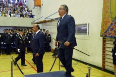 Al comienzo de la jura, ante unos 2.000 familiares de los nuevos policías, el ministro ha impuesto a la bandera de España la corbata de honor de Alfonso X el Sabio, otorgada por el Ministerio de Educación y Cultura.