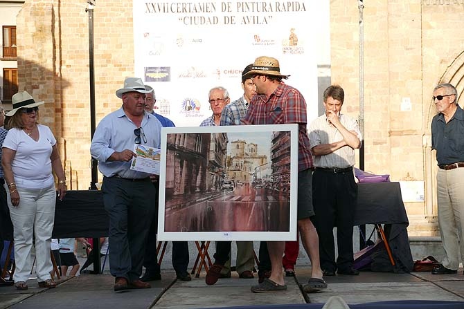 200 pintores se han dado cita el sábado por las calles de Ávila, uno de los premiados en un claustro del Monasterio de Santo Tomás, para plasmar imágenes de la ciudad y de sus monumentos. El premio Ayuntamiento de Ávila, dotado con 1.600 euros, fue para un autor que fijó en las típicas rocas que rodean la muralla en el Rastro.