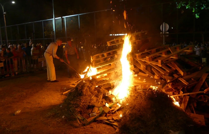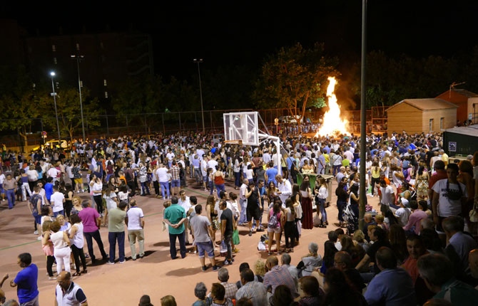 La tradición de la Asociación de Vecinos del Barrio de la Toledana ha llevado en la medianoche al alcalde, José Luis Rivas, a prender la hoguera en el polideportivo del barrio, acompañado de concejales de casi todos los barrios.
