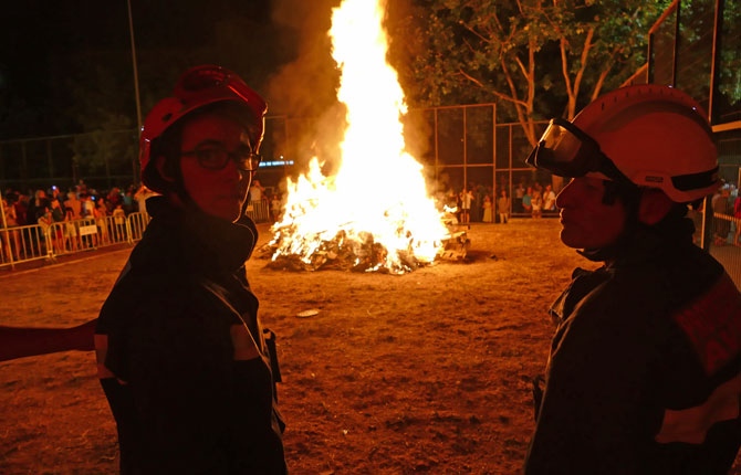 Ha ardido de tal modo que los voluntarios de Protección Civil han estado más pendientes que nunca del fuego, refrescándolo continuamente con agua. Eso sí, también han estado encargados de llevar hasta el fuego todos los deseos que los chavales acercaban hasta ellos en forma de pequeñas notas.