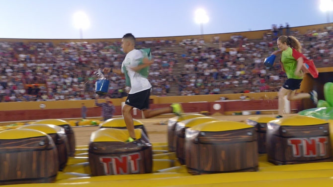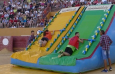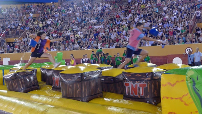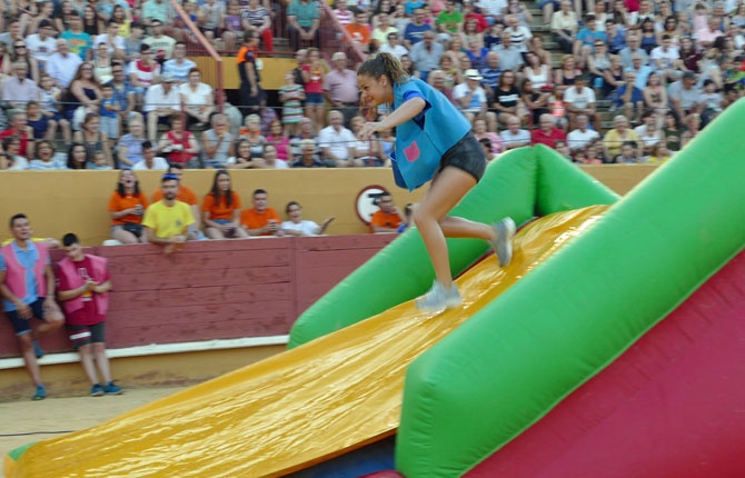 Agrupadas en seis equipos, han saltado por hinchables con divertidas caídas, en caballos de plástico y han derribado bolos humanos con los ojos vendados.
