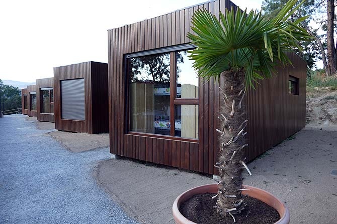Se trata de ocho bungalós de madera con ocho plazas cada uno que se han construido detrás del edificio principal de las instalaciones de la Fundación Caja de Ávila en Navaluenga.